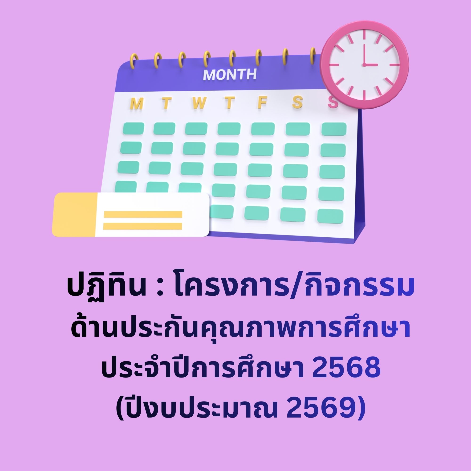 ปฏิทิน : การจัดโครงการกิจกรรมส่งเสริมและพัฒนาคุณภาพด้านประกันคุณภาพการศึกษา ประจำปีการศึกษา 2568 (ปีงบประมาณ 2569)